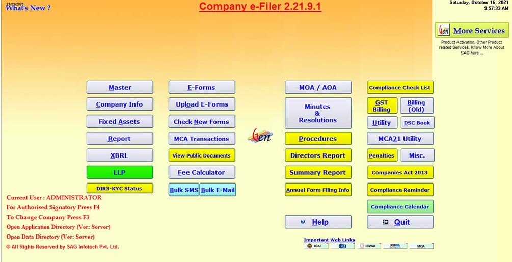 One of Gen Complaw's standout features is its seamless integration with various third-party applications. Additionally, the software adheres to Government Acts, allowing the filing of essential e-forms like AOC-4, MGT-7/7A, and ADT-1. Furthermore, Gen Complaw supports the e-filing of a wide range of MCA V3 forms, encompassing LLP forms, company forms, and director-related forms.